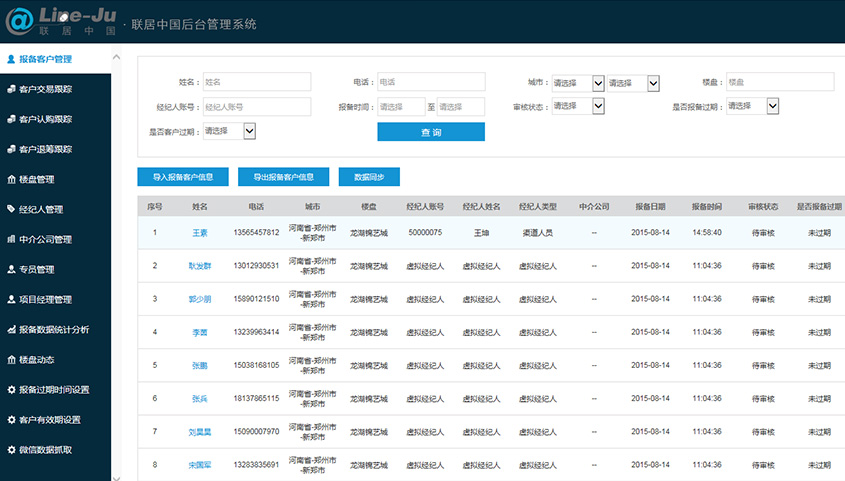 • 報備客戶(hù)管理:    管理所有報備客戶(hù)的信息,判定客戶(hù)的有效性